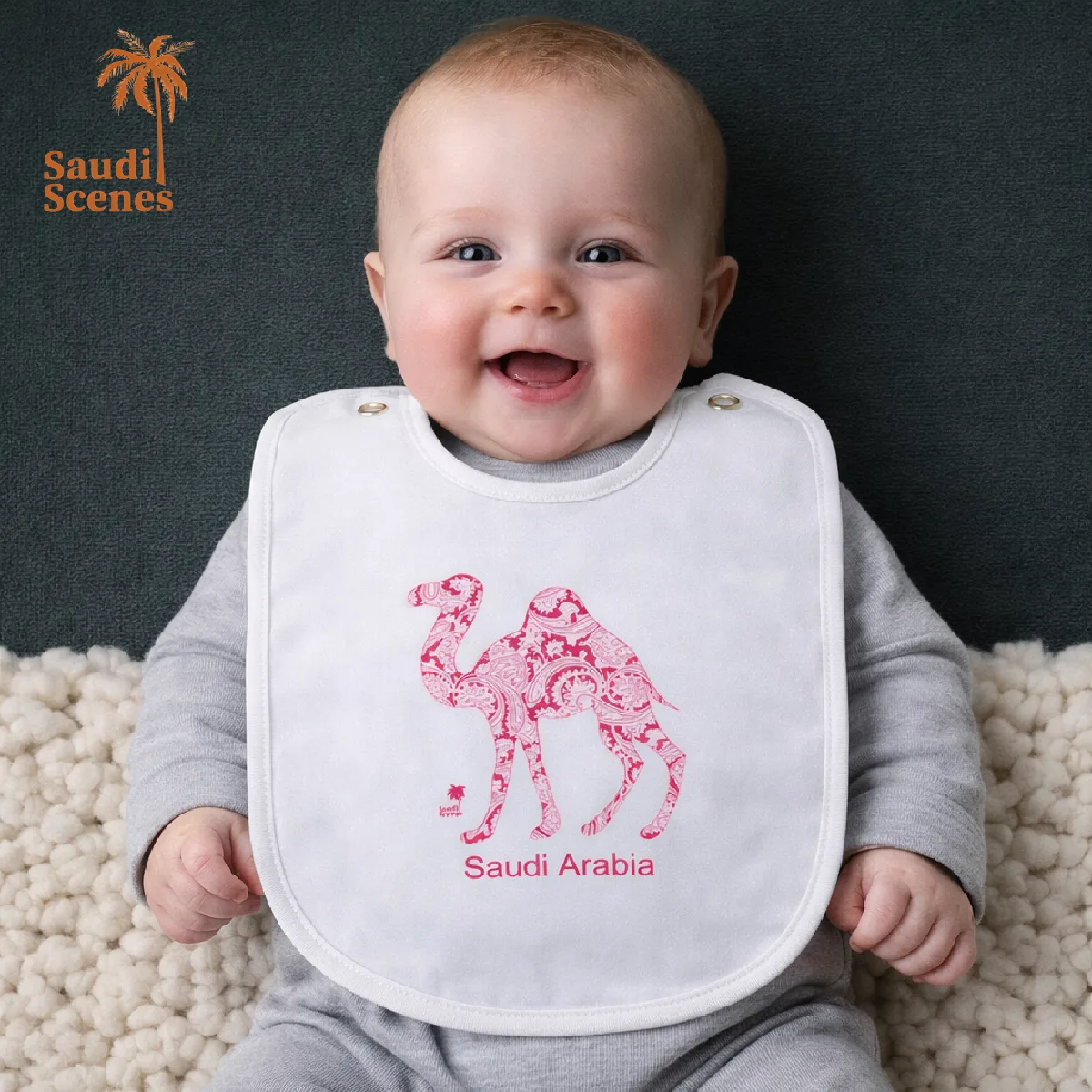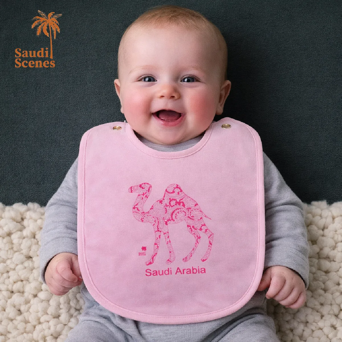 Home Printed Items Baby Bibs Baby Bib: Pink Camel Saudi Arabia