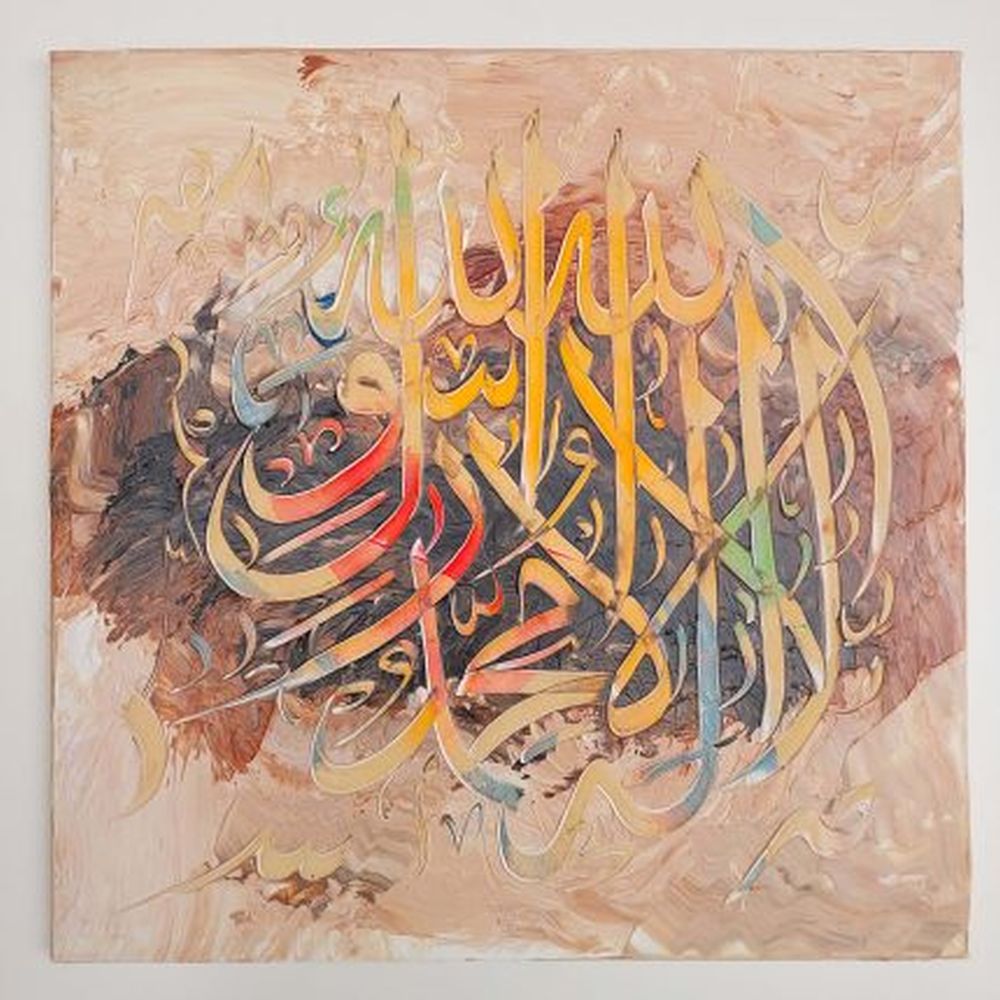 A beautiful oil painting , a calligraphy of “Shahada” or Muslim creed.