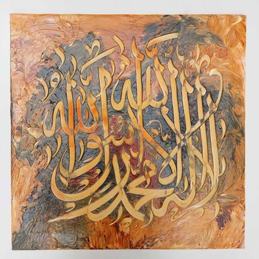 A beautiful oil painting , a calligraphy  of “Shahada” or Muslim creed.