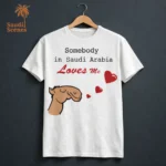 - Capture the magic of Saudi Arabia: This charming t-shirt features a playful camel design and a heartwarming message, perfectly encapsulating the spirit of this beautiful country.